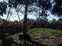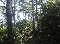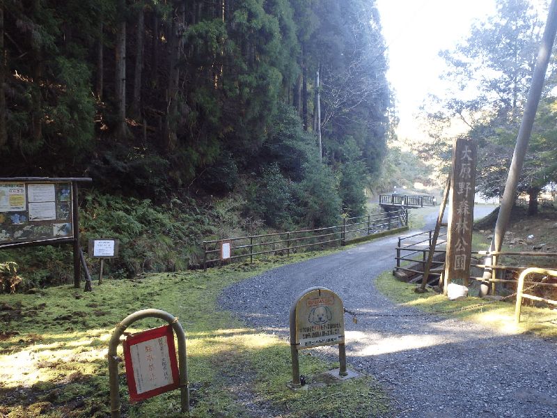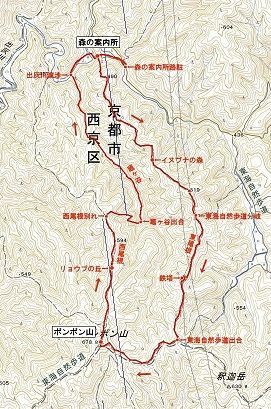 きょうは朝から行楽日和の素晴らしい好天だ。急に緑の中を歩きたくなって近場のポンポン山だ。高槻市内から樫田を経て中畑まではバス道だが、中畑回転場以降京都に入って1車線の狭い府道をくねくね向日町方面へ進むと大原野森林公園の標柱がある。森の案内所の鎖ゲートが閉っている(表示は9〜16時利用可)ので近くの空地に路駐だ。