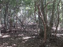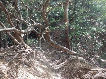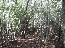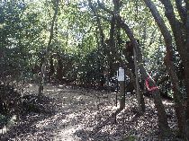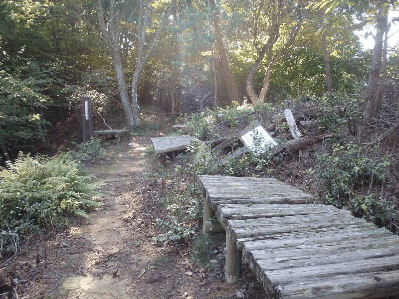 (森の案内所ゲート) (東尾根端の急坂を登る) (東尾根端の休憩ベンチ)