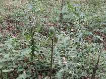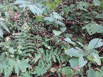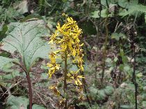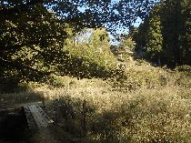 (柵内に咲き残るオタカラコウ) (針葉樹林帯に入る)