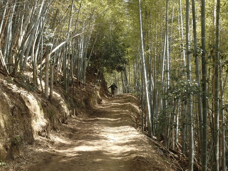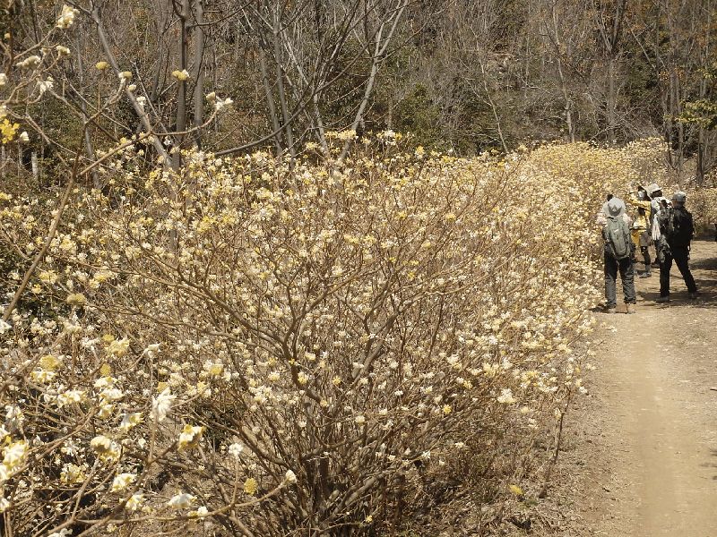 (竹林を登る) (海抜200mミツマタ群生地) (ハイカーで大賑わい)